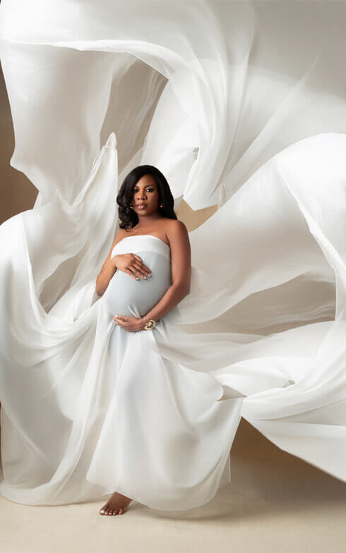I offer a selection of maternity gowns, accessories, and fabrics to create stunning looks. If you’re open to artistic nude or fabric shots, I’ll ensure the process feels comfortable and respectful, resulting in elegant, timeless images.